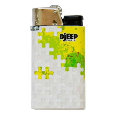 DJEEP PUZZLE одноразовая зажигалка формата мини. Варианты цветов: розовый, зелёный, жёлтый и красный.